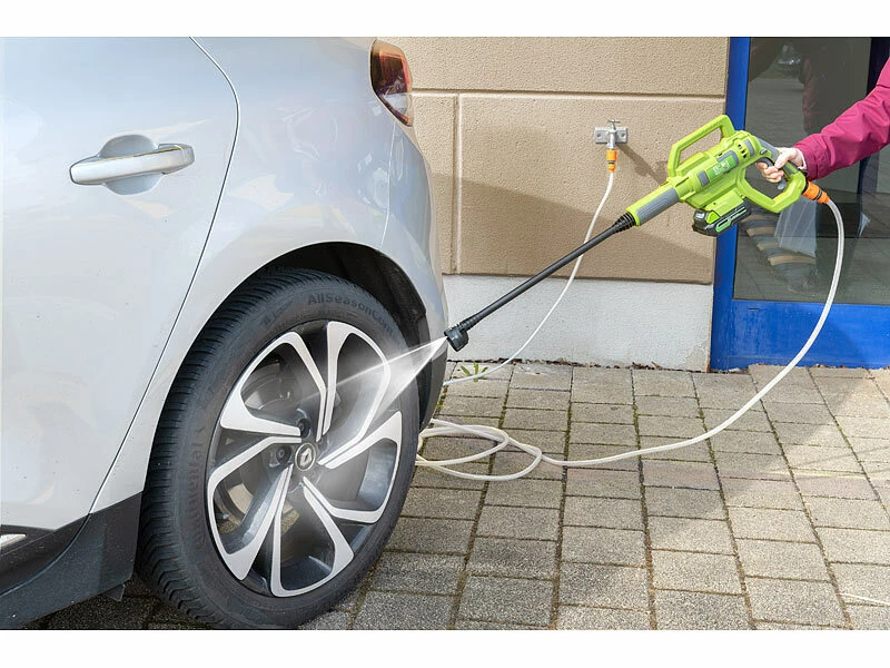 - Akku-Druckreiniger inklusive Akku, Schnell-Ladegerät, Schlauch, Schlauchfilter, Verlängerungslanze, Adapter für Gartenschläuche und deutscher Anleitung – Akku-Druckpistolen – Außerdem relevant oder passend zu: Dampfreiniger