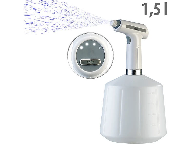 AGT Sprüher:Akku-Pump-Drucksprüher Mit Einstell-Düse, 1,5 Liter, Lösungsmittelfest