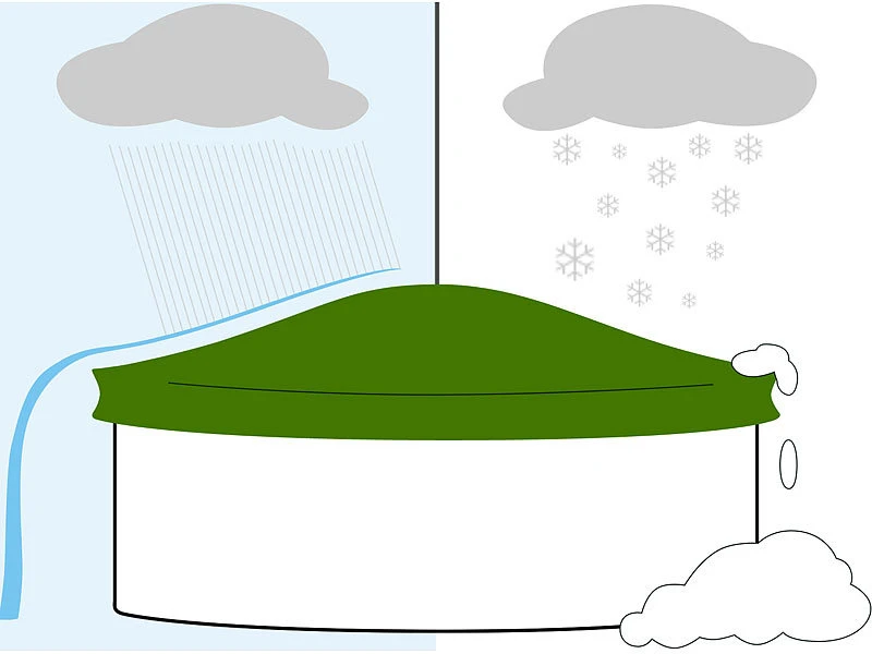 - Nimmt den Druck durch Schnee, Wasser etc. von der Plane