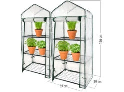 Royal Gardineer Minigewächshaus:2er-Set Folien-Gewächshäuser, 3 Etagen, Aufroll-Tür, 59x126x39cm, Weiß