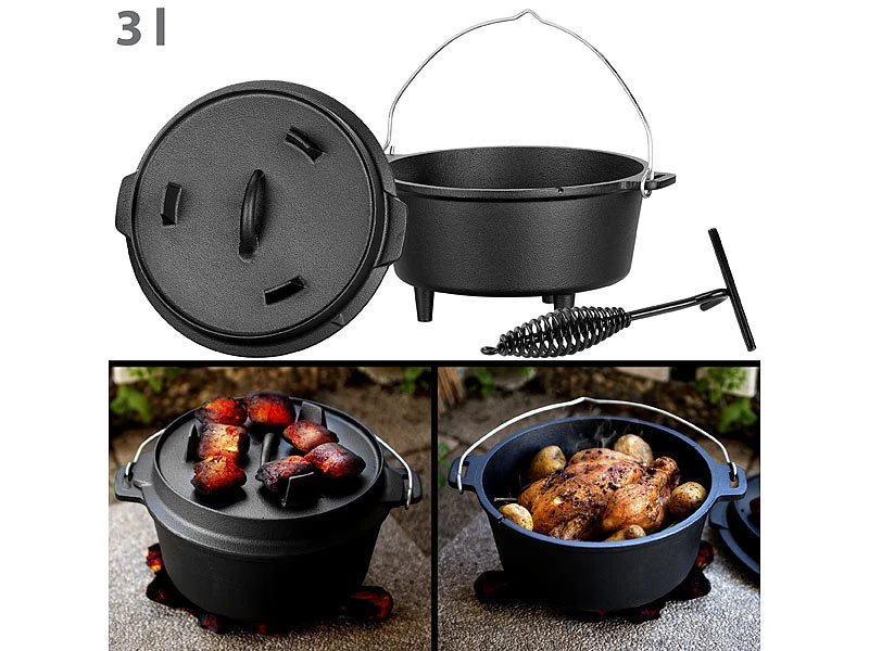 - Dutch Oven mit Deckel inklusive Deckelheber und deutscher Anleitung – Gulaschkessel – Außerdem relevant oder passend zu: BBQ, Füße, Zelt, Guss, Feuer, durch, Pizza, Grill, Urlaub, Popcorn, Gasherd, Pfannen, Grillen, Picknick, Holzofen, Grillkorb, Gaskocher, Kochstelle, Grillpfanne, Feuerschale, Raketenofen, Campingkocher, Camping Kocher Gas
