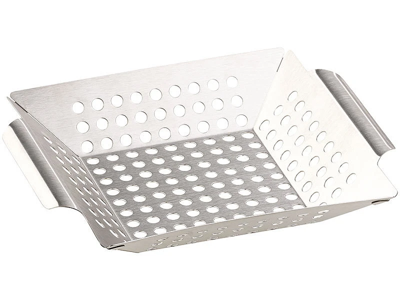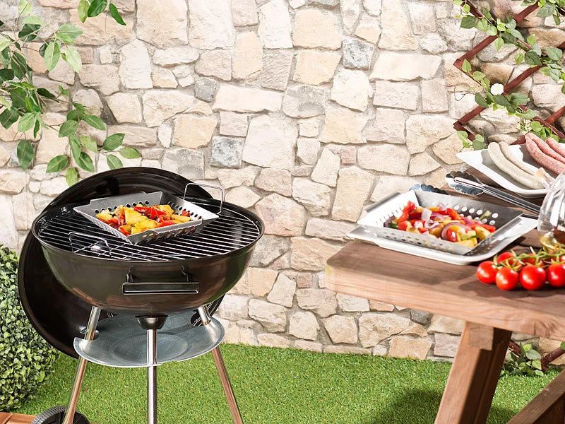 Grilllen Sie jetzt praktisch alles Essbare – auch feines und kleines Grillgut wie Paprika, Zucchini, Banane und Meeresfrüchte. Dank zahlreicher kleiner Löcher in den Schalen wird Ihr Grillgut optimal gegart, ohne dass es Ihnen durch den Rost fällt!