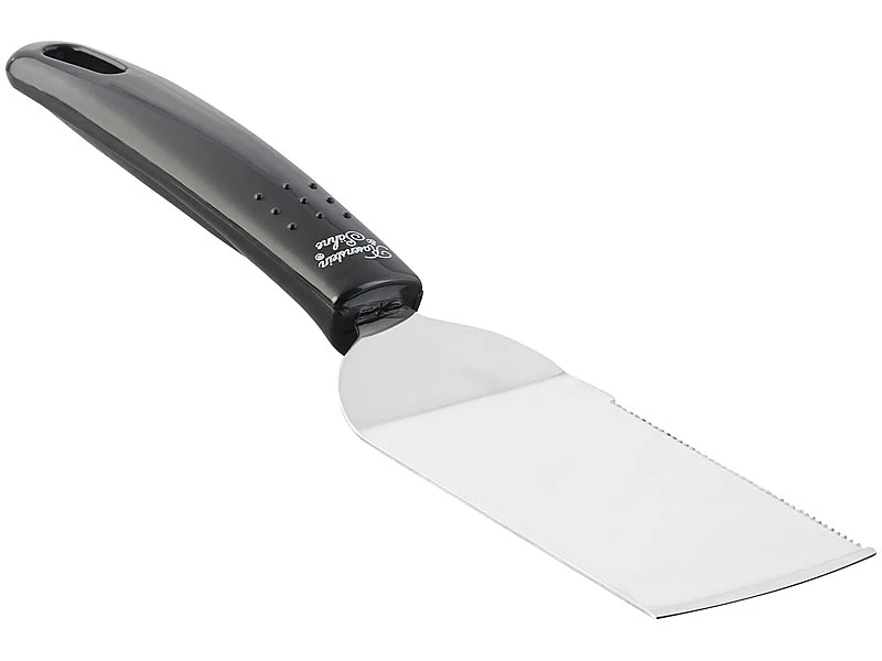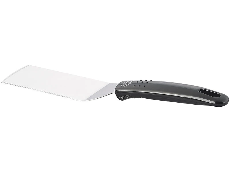 Die Zubereitung gelingt im Handumdrehen: Mit seinem großen Griff liegt der Grillwender gut in der Hand. Dank abgewinkelter Form und angeschliffener Vorderkante lösen und wenden Sie Ihr Grillgut mühelos. Und mit der praktischen Wellenschliff-Schneide an der Kante zerteilen Sie alles portionsgerecht.