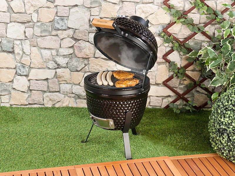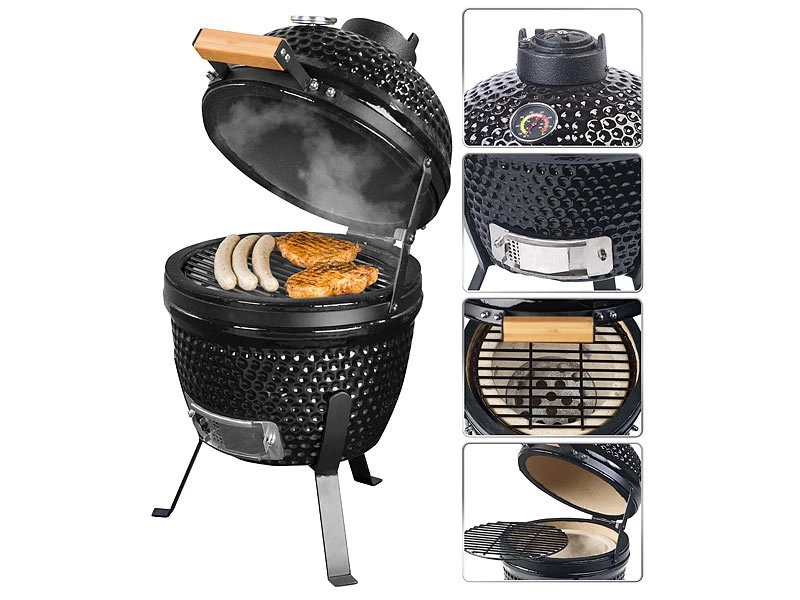 - Keramik-Kugelgrill im Kamado-Stil zum Grillen und Garen