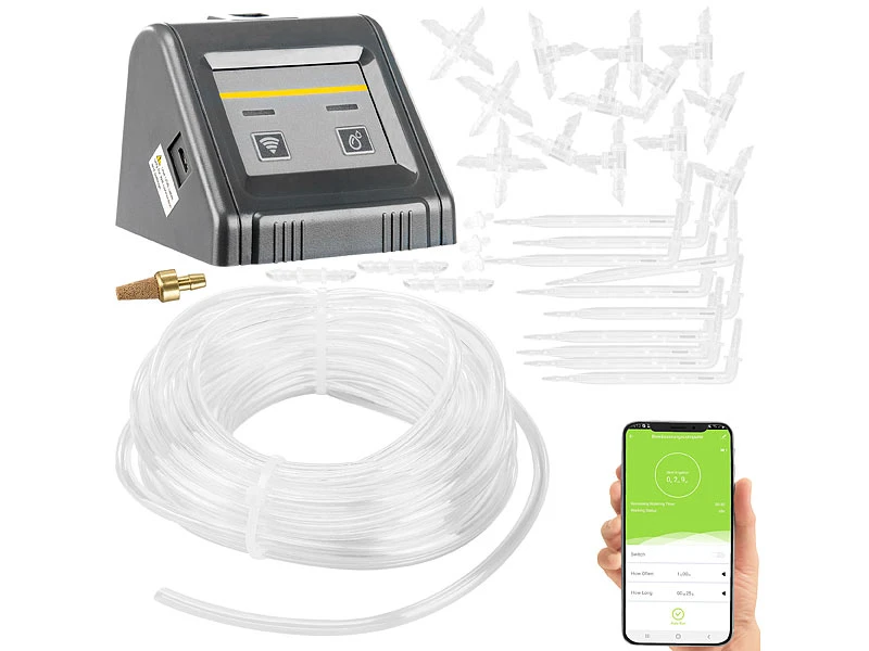 - Bewässerungsanlage mit Wasserpumpe inklusive USB-Stromkabel, 10-Meter-Schlauch, Filter, 14 Schlauchverbinder, 10 Bewässerungs-Spieße, 2 Stopfer für Schlauchenden, Montagematerial und deutscher Anleitung – Zimmerpflanzen Bewässerung – Außerdem relevant oder passend zu: iPad, Blume, Töpfe, Handy, Blumen, Balkon, iPhone, Urlaub, Garten, Tablet, Galaxy, Samsung, Terrasse, Erdspieß, Gewächshaus, Mobiltelefon, Perlschläuche, Zeitschaltuhr