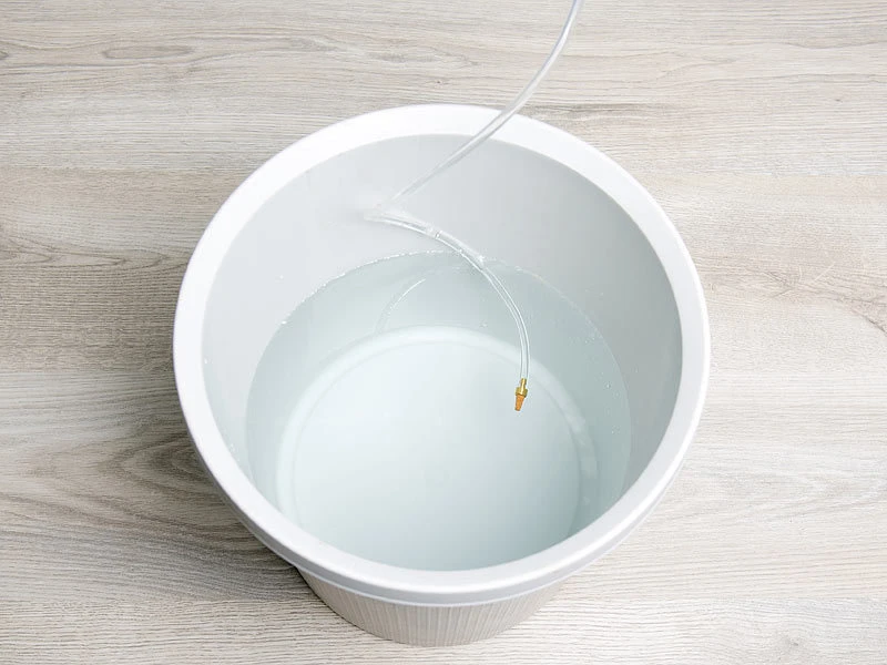 - Selbstansaugende Wasserpumpe: schaltet sich automatisch ab, wenn das Wasser im Eimer leer ist
