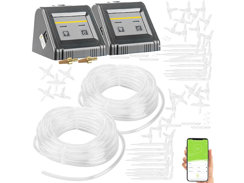 - Stromversorgung: 4 Batterien Typ AA / Mignon oder per USB (Batterien und USB-Netzteil bitte dazu bestellen). Wichtig: Die USB-Stromversorgung ist nur zur App-Steuerung und Konfiguration notwendig. Der Bewässerungszeitplan kann autark über die Batterien erfolgen.