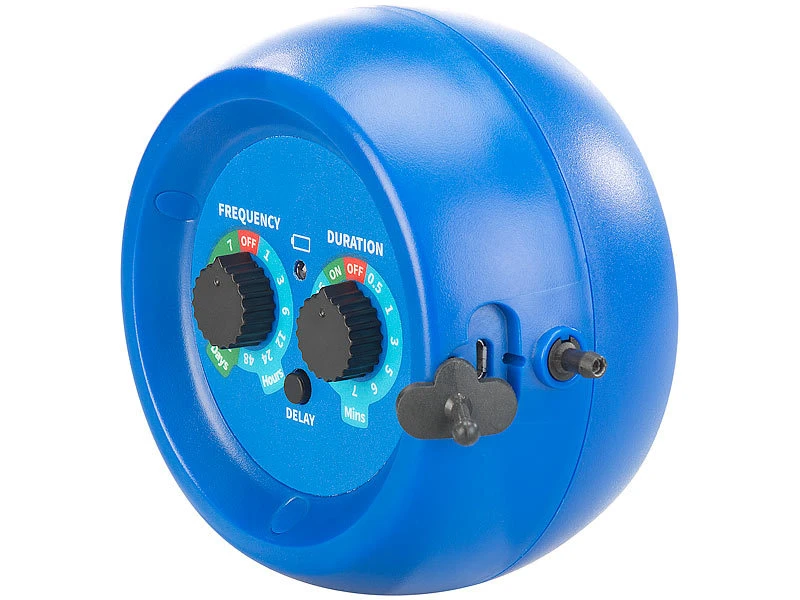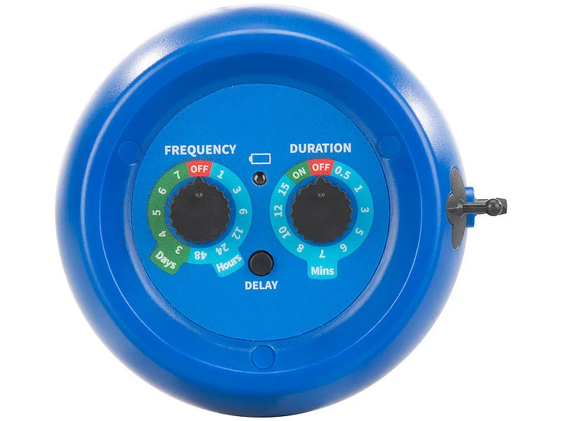 - Einfache Bedienung: je ein Dreh-Regler zum Einstellen von Bewässerungsfrequenz und Bewässerungsdauer
