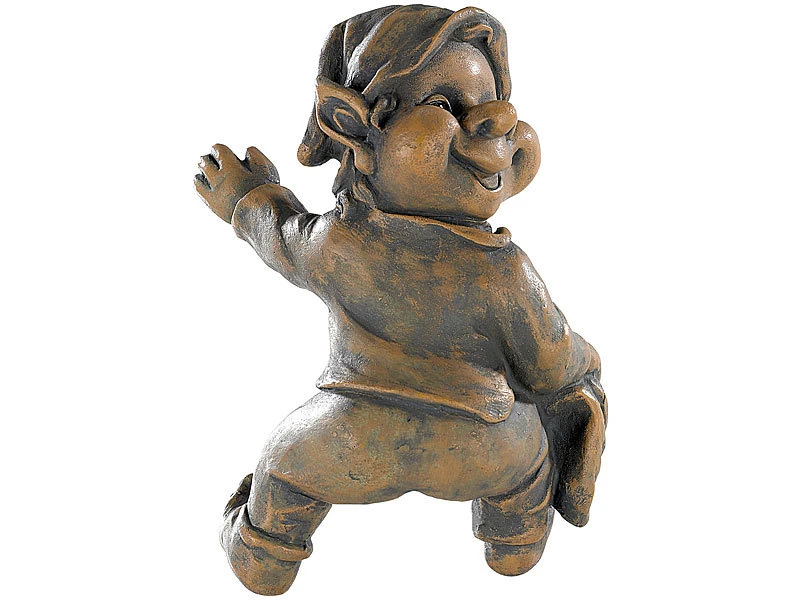 Aus wetterfestem, bruchsicheren und liebevoll bemaltem Kunstharz zaubert er Ihnen mit schönen Details viele Jahre lang ein Lächeln auf die Lippen.