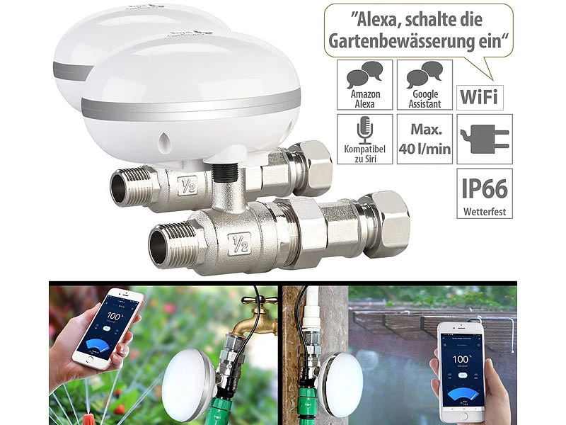 Royal Gardineer Bewässerung WiFi:2er Pack WLAN-Bewässerungscomputer Mit App-Steuerung