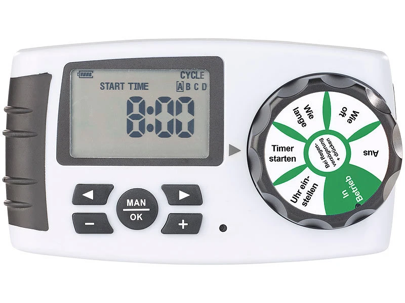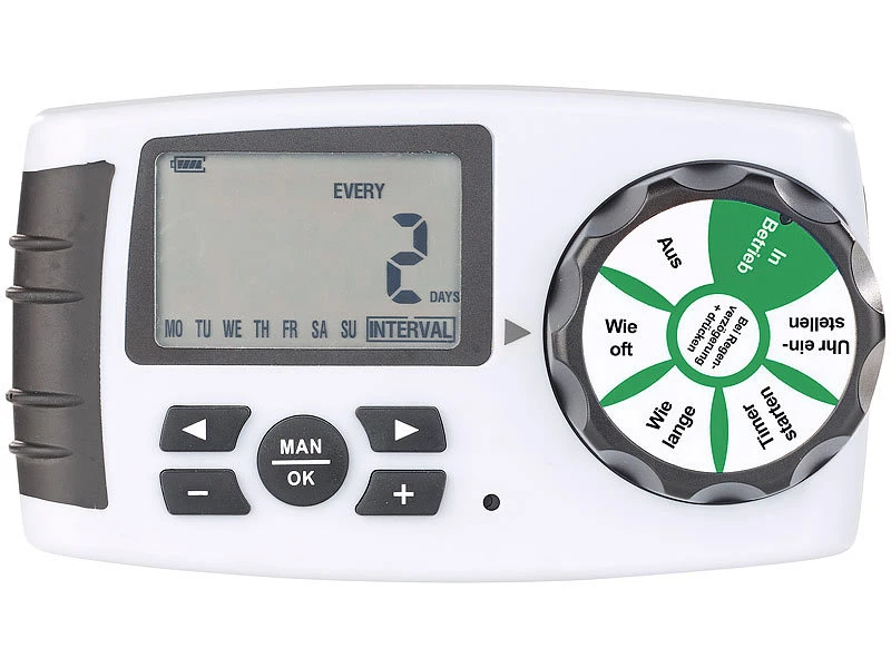 - Bewässerungs-Computer inklusive 2 Bewässerungs-Adaptern, 2 Schlauch-Schnell-Kupplungen, 2-Wege-Wasserverteiler, Wasserhahnverbinder und deutscher Anleitung