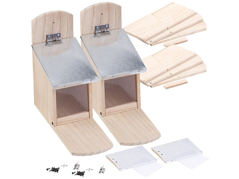 - 2x Futterhaus jeweils als 5-teiliger Bausatz inklusive Kunststoffscheibe, Dachplatte, Montagematerial und deutscher Anleitung – Holzbausatz Futterhäuschen – Außerdem relevant oder passend zu: Basteln, Insekten, Vogelhaus, Gartendeko, Futterautomat, Insektenhotel