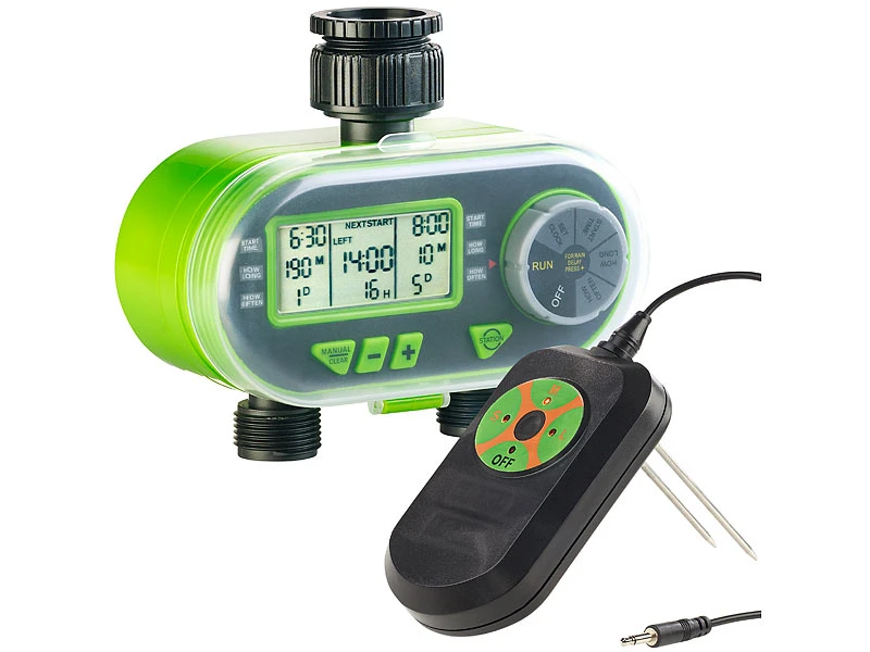 - Bewässerungscomputer BWC-200 inklusive Bodenfeuchte-Sensor, 2 Sensor-Stiften, Verbindungskabel und deutscher Anleitung