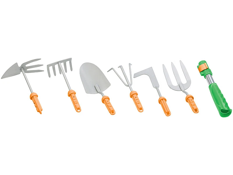 Royal Gardineer Gartenwerkzeug:7-teiliges Garten-Werkzeug-Set Mit 6 Wechsel-Aufsätzen Und Handgriff