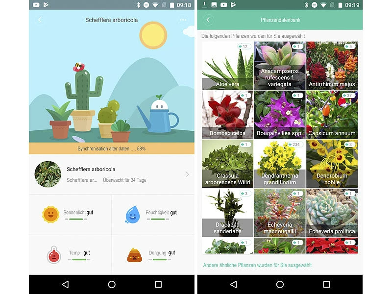 - Riesige App-Datenbank mit über 5.000 Pflanzen (wissenschaftliche Namen) und erster Hilfe (deutsche FAQ)