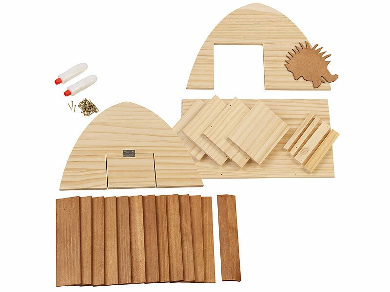 - Igelhaus-Bausatz bestehend aus 24 Teilen inklusive Nägel, 3 Leim-Tuben und deutscher Anleitung – Igelkuppel – Außerdem relevant oder passend zu: Garten, Basteln, Spielzeug, Vogelhaus, Insektenhotel