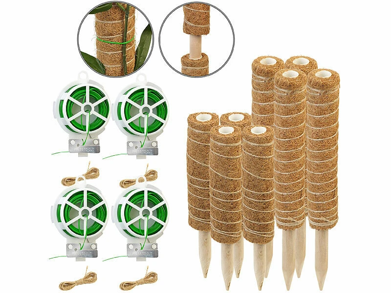 Natürlich und nachhaltig: Die Pflanzstäbe bestehen aus den Naturmaterialien Holz und Kokosfasern. Selbst die Befestigungsschnur ist aus natürlicher Jute! So sind Ihre Pflanzstäbe nicht nur stabil, sondern auch ein echter Hingucker in Ihrer grünen Oase.