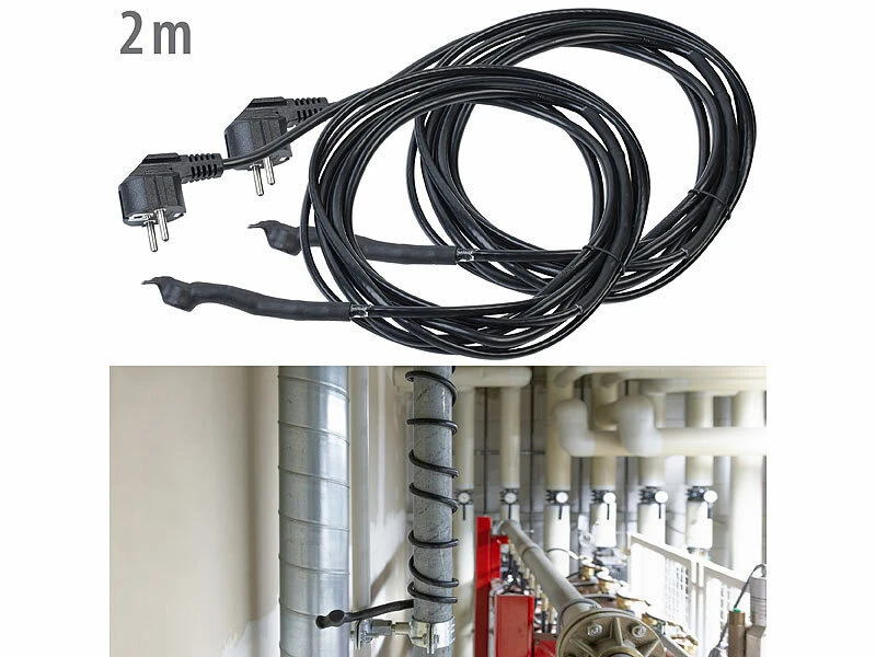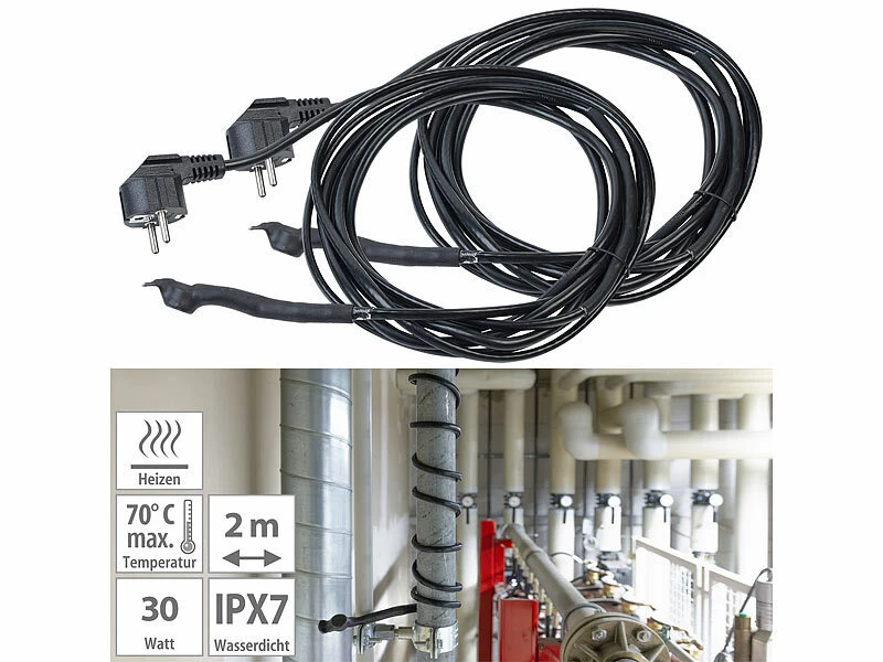 - 2 Meter Heizkabel und 2 Meter unbeheiztes Anschlusskabel mit Schutzkontakt-Stecker