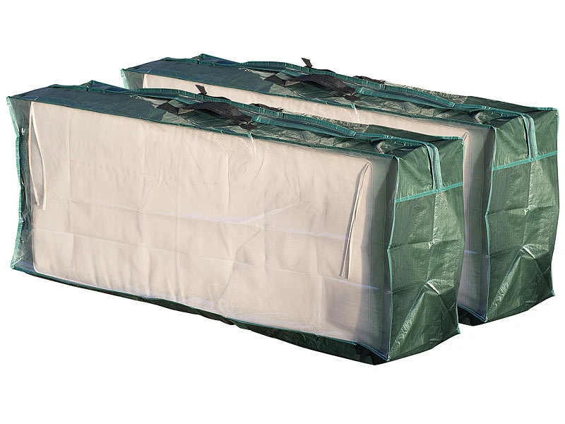 Verstauen Sie Ihre Outdoor-Sitz- und Liegekissen sicher vor Wind und Wetter! Die wetterfeste Schutztasche aus Polyethylen-Gewebe bewahrt sie vor Umwelteinflüssen, Nässe und Staub. So sieht Ihr Garten-Set auch nach einem langen und kalten Winter noch aus wie neu!
