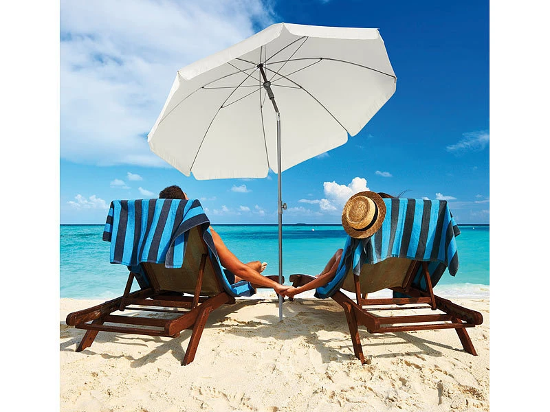 Schaffen Sie sich ein schattiges Plätzchen: Genießen Sie mit Ihrer Familie einen Tag in der Sonne, ohne einen Sonnenbrand zu riskieren. Spannen Sie einfach Ihren neuen Schirm mit extra-hohem UV-Schutz und 2 m großer Spannweite auf. So zeigen Sie der Sonne ihre Grenzen.