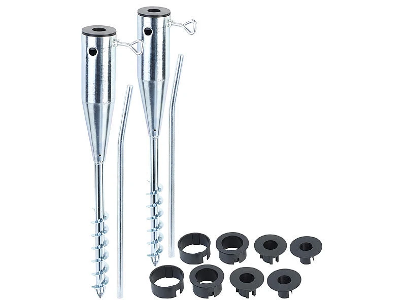 - 2er-Set Sonnenschirmständer mit Bodendübel inklusive 5 Adaptern, Abdeckkappe, Drehstange, Befestigungsschraube und deutscher Anleitung – Bodenhülse für Sonnenschirm – Außerdem relevant oder passend zu: Ständer, Erdspieß
