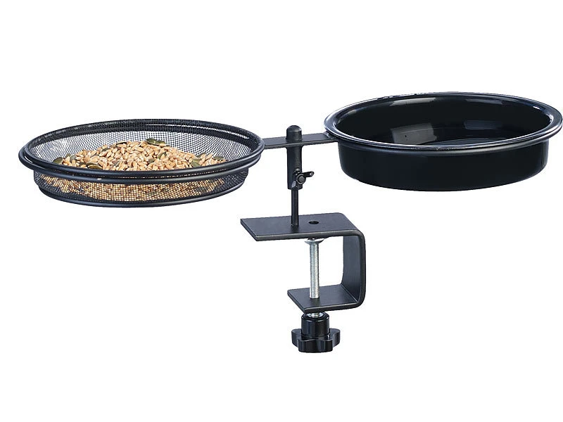 - Material Trinkschale: Kunststoff, Futterschale: Metall, Klemmhalterung: Metall