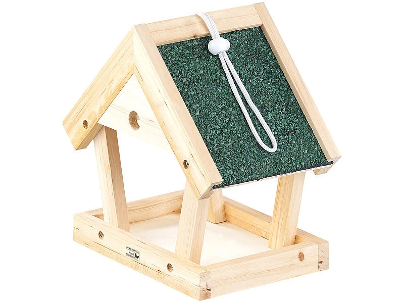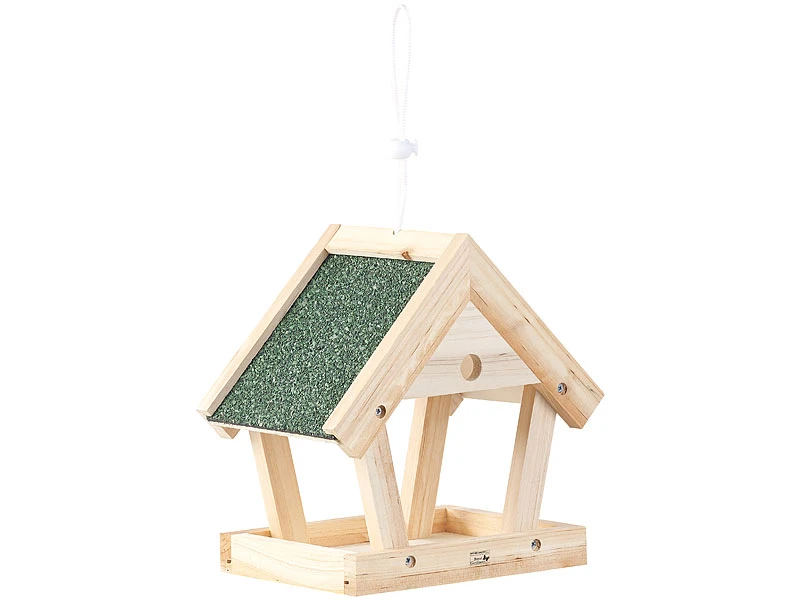 Entdecken Sie die Natur: Hängen Sie das fertige Häuschen auf und beobachten Sie hautnah die Vögel beim Fressen. Es ist rundherum offen. So haben Sie immer beste Sicht.