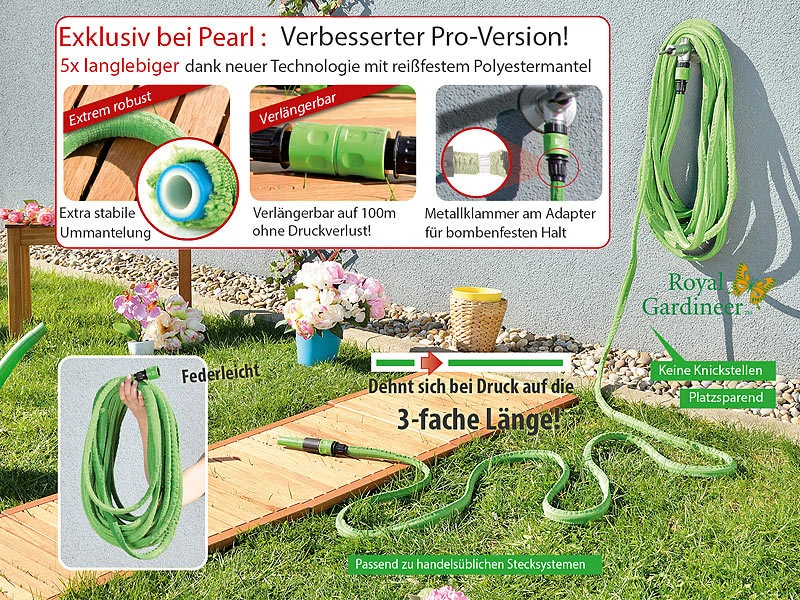 Dehnbarer Gartenschlauch PRO.V2 mit 5 – 15 m: